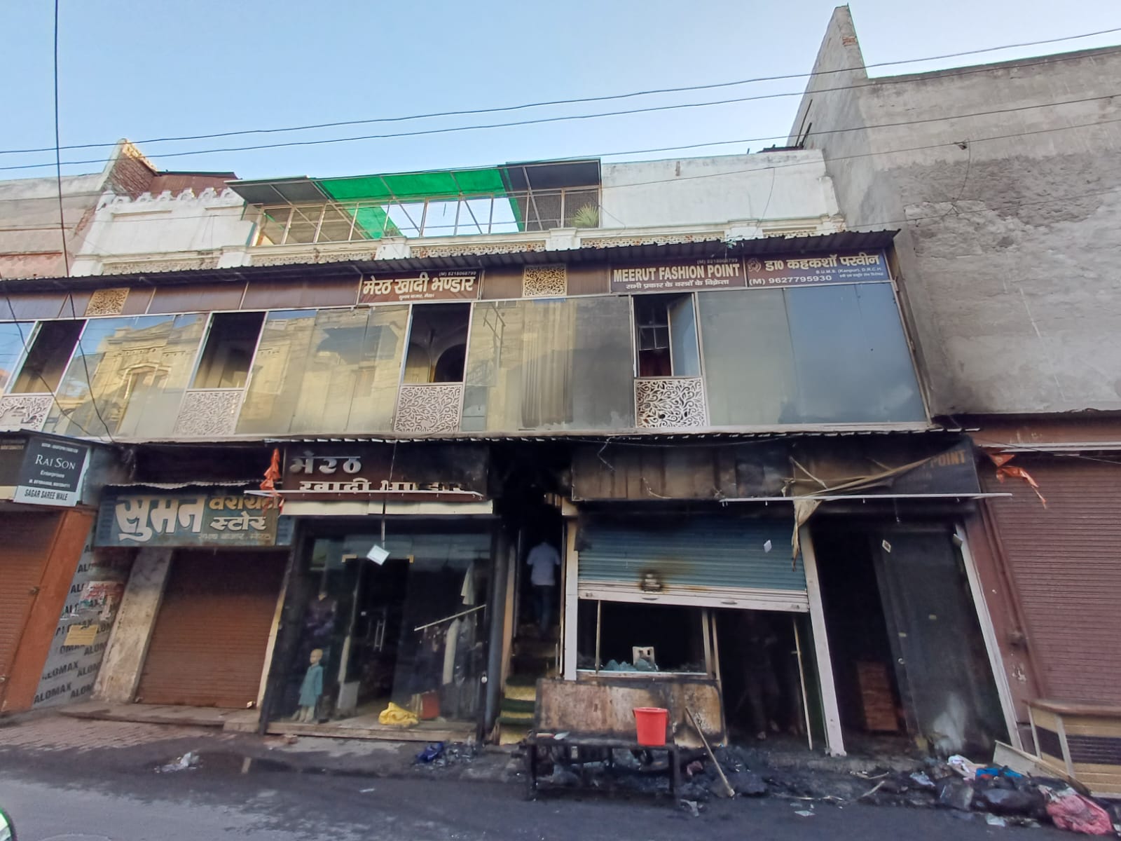 आग इतनी भीषण थी कि इसने पड़ोस की दुकानों को भी अपनी चपेट में ले लिया। मेरठ फैशन हाउस दुकान मालिक आबिद कलीम ने बताया कि उनकी कपड़े की दुकान में रखा सारा सामान और थान जलकर राख हो गए हैं। मेरठ खादी भंडार में आग दुकान के अंदर तो नहीं पहुँची, लेकिन बाहर लगा बोर्ड जलकर स्वाहा हो गया। दुकान की पहली मंजिल पर स्थित घर में भी आग की लपटें पहुँच गईं, जिससे सीलिंग और घर का जरूरी सामान जल गया। गर्मी के कारण दुकान के शीशे भी चकनाचूर हो गए।