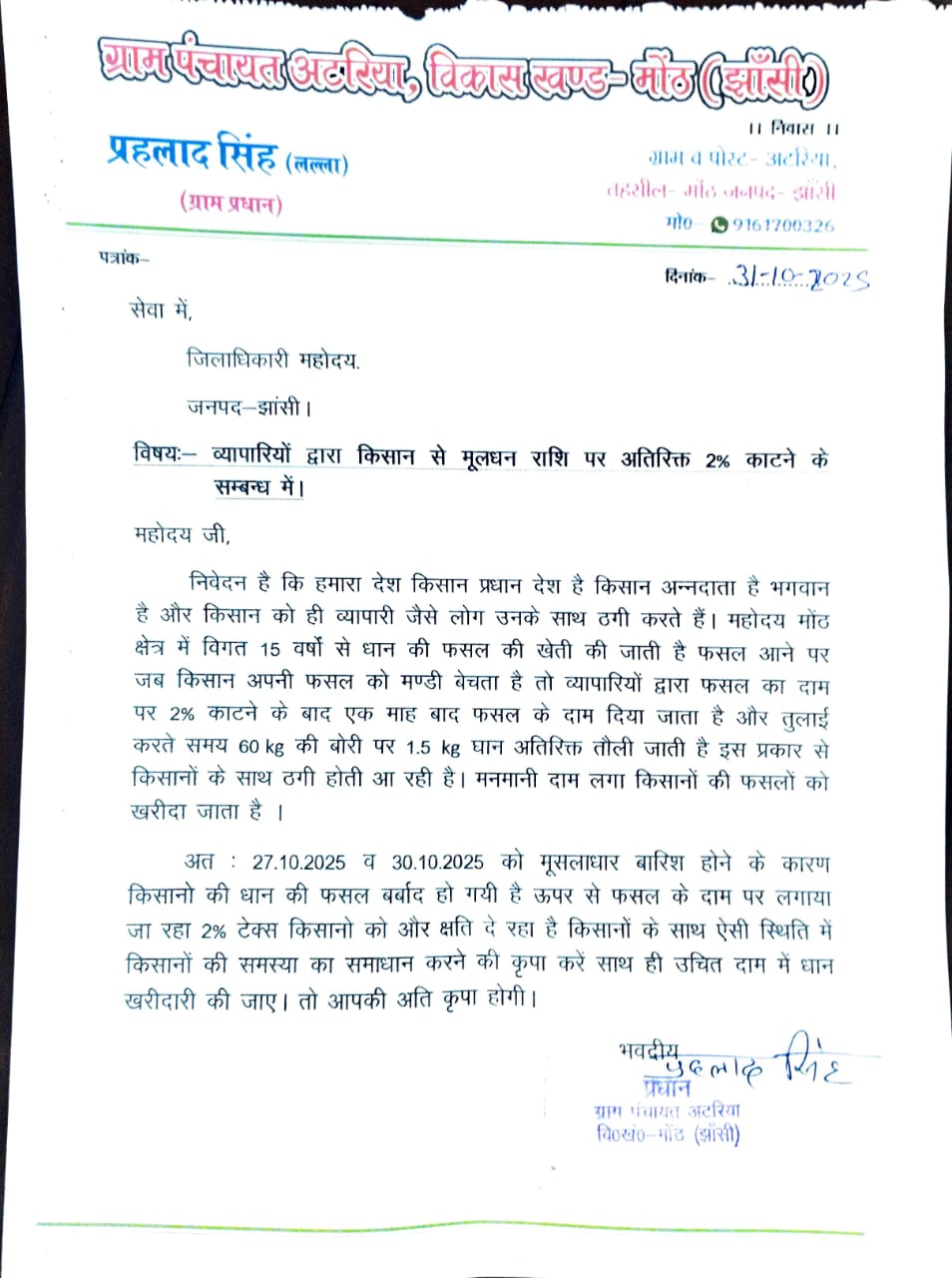 बेमौसम बरसात से फसल बर्बादी पर प्रहलाद सिंह लल्ला का जिलाधिकारी को पत्र — किसानों ने मांगी तत्काल राहत